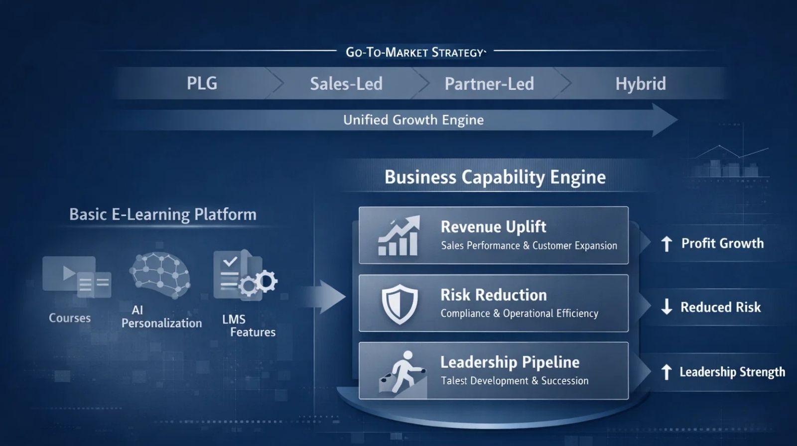 Successful e-learning go-to-market strategies reposition the offering as a business capability enabler, not a learning tool.
